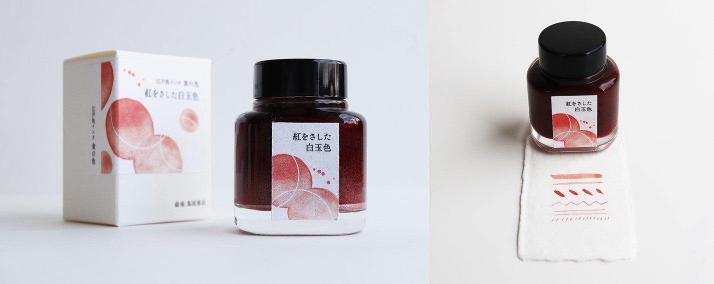 It is an ink with a soft and warm red color with fine silver glitter. In the town of Jiang, about half of the rolled white balls like red and white rice cakes are dyed red, and they can enjoy their gorgeous appearance and eat white balls as a luxurious snack that makes them feel cool in summer. The lame contained in the white jade ink with red is one color that makes you feel cool. Water-based ink is used as the material, so you can enjoy different nuances of color depending on the paper quality.
