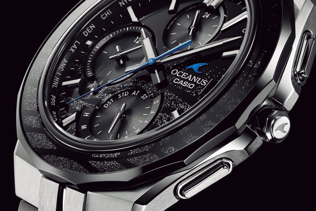 The point is that the manta ray of Casio’s high-end line “Oceanus” uses a thin dressy case. This model has a lacquer decoration on the dial and bezel. Maki-e is a traditional Japanese technique that draws pictures and letters with lacquer on the surface of lacquer ware and sprinkles gold and silver powder on the surface of the lacquer ware before drying. We are asking for cooperation from Mr. Yutaro. The point is that each individual has a different facial expression because it was created by Mr. Shimoide himself. With a splendid processing that emphasizes the chic atmosphere of the titanium exterior, the essential content also covers a full range of functions such as world timer and tough solar, including time adjustment by mobile link via Bluetooth. It is an attractive model that fuses the tradition and innovation that Japan is proud of.