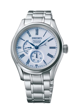 A limited edition model that uses the world-famous porcelain “Arita porcelain” for its dial, which boasts a history of more than 400 years. The dial is produced by the well-established Arita porcelain kiln and Hiroyuki Hashiguchi, a famous potter who belongs to the Shin kiln. The soft tone peculiar to white porcelain is a three-dimensional shape of the dial body using a special technique, and the surface is glossy finished with glaze, which clearly sets it apart from metal dials. The dial design is rather complicated with a power reserve and small seconds, but the shaded display by “Usurizome” is really beautiful. The movement is equipped with a mechanical Cal.6R27, and its movement can be confirmed from the skeleton back. So-called porcelain dials can also be found on antique watches, but dials that express such delicate tones are rare.