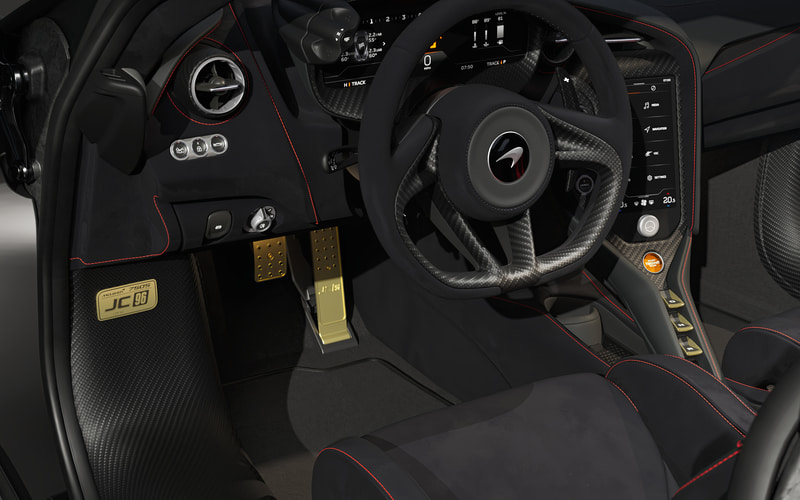 The interior is also designed to evoke the soul of the 1996 F1 GTR, with F1-inspired pedals, drive select switches, and commemorative plates all finished in gold, and the headrests and armrests are adorned with the specially created “JC96” logo. The front luggage compartment will also be fitted with an optional titanium “McLaren Track Record Plate” to commemorate McLaren’s legacy on the track.