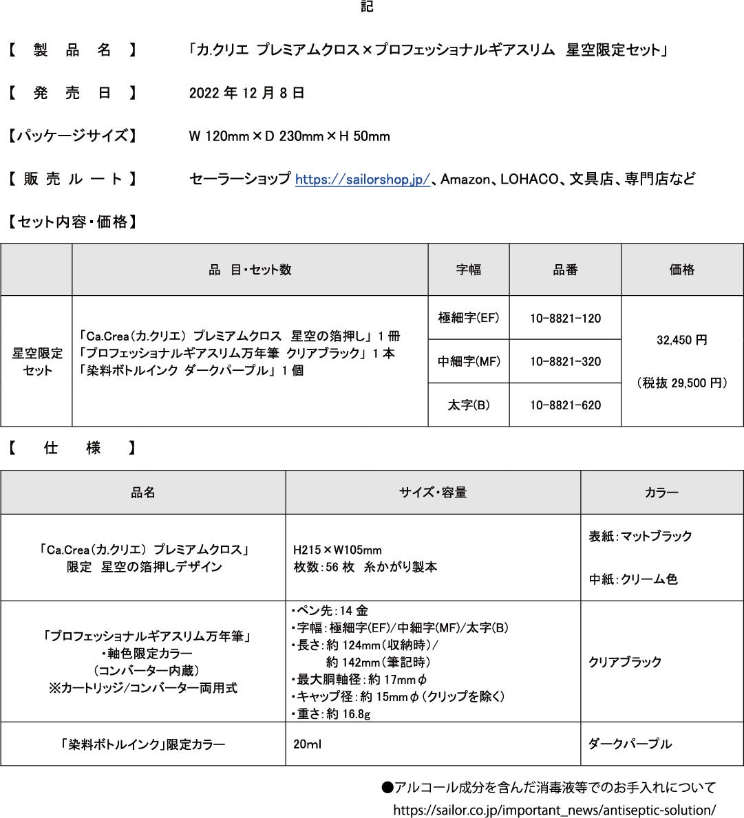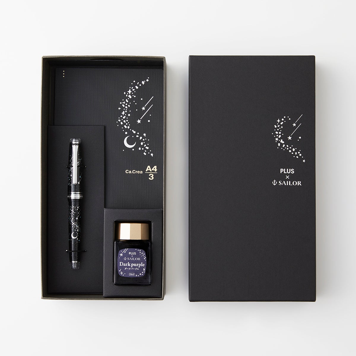 ANCORA (https://www.ancora-shop.jp), a fountain pen and stationery gift shop jointly operated by PLUS and Sailor Fountain Pen, will release a limited edition version of the starry sky set at the same time. The manufacturer’s suggested retail price (tax included) is 32,450 yen.