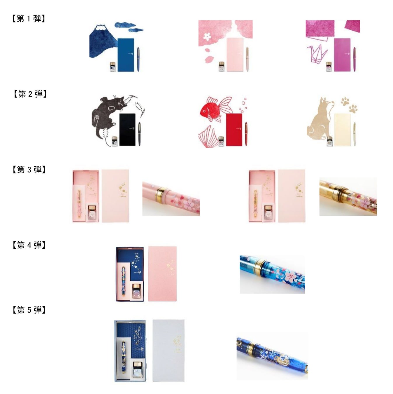 In February 2019, the first “Ka Crier Premium Cross ×Profit Junior Limited Set” was released, which features three colors of “Navy”, “Pink”, and “Purple” with motifs that allow you to feel the Japan of “Mt. Fuji”, “Sakura”, and “Origami Crane”, respectively. In September of the same year, the second design was released in the colors of “black”, “red”, and “ivory” with pets familiar to Japan people: cat, goldfish, and dog. In March 2020, cherry blossoms symbolized spring in Japan, and in March 2021, cherry blossoms at night. In December 2021, a set with the theme of “Snow Blossom” was released. It has been very popular, especially by fountain pen lovers.