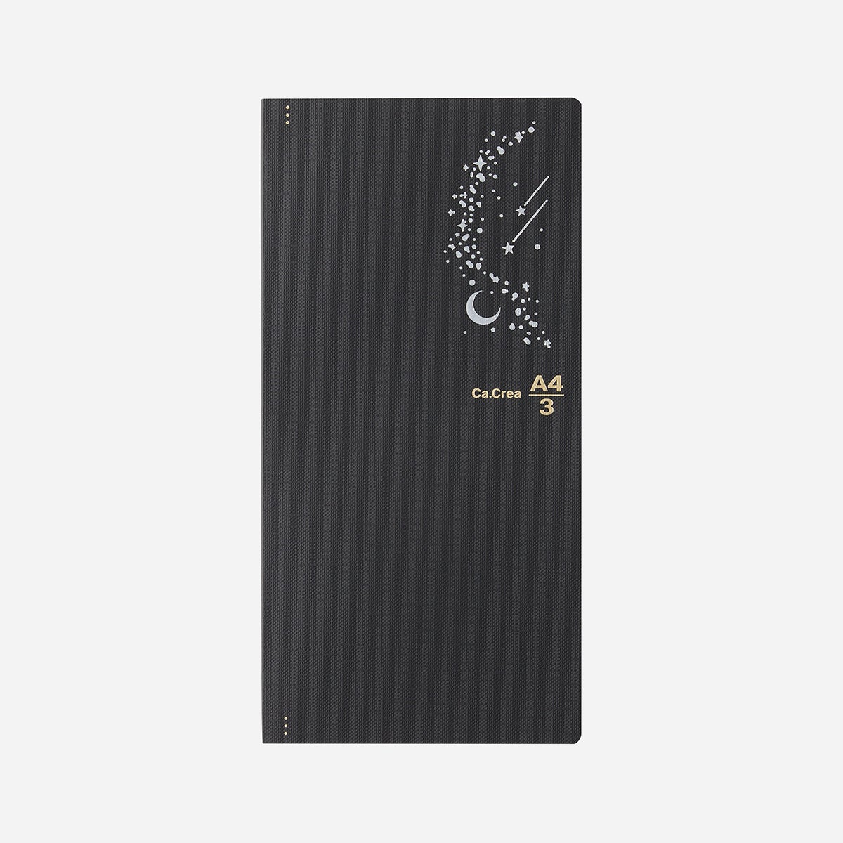 It is an A4 × 1/3 size notebook that fits neatly on A4 paper folded in three. The cover is made of durable paper cloth. The inner paper is a cream color that is easy on the eyes, and the ink of the fountain pen does not slip through or transfer easily, and the paper is made of past-pierce cream paper that is smooth and comfortable to write on. It is thread-bound and opens firmly.