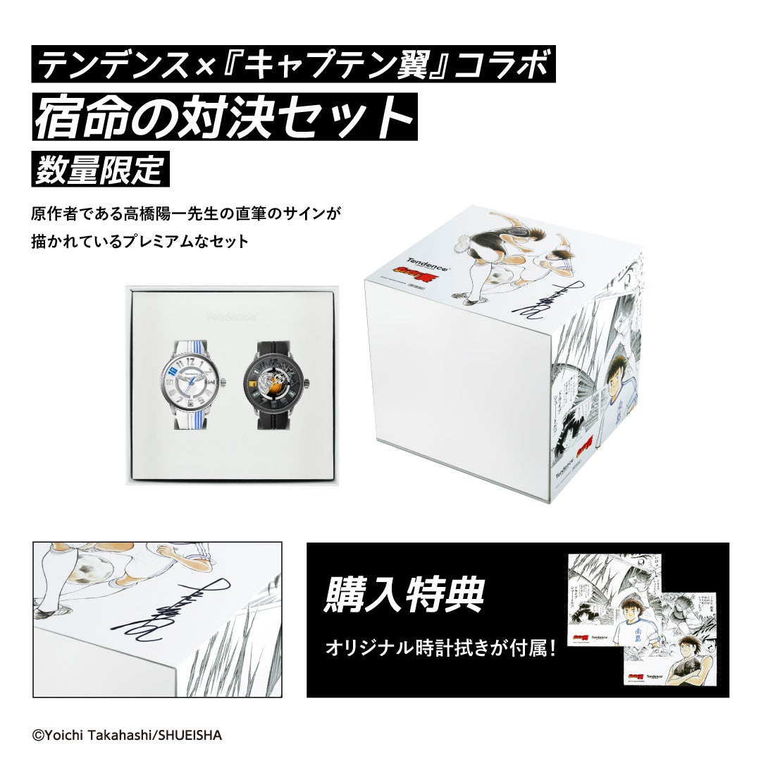 “Captain Tsubasa” Collaboration Fateful Confrontation Set *Tendence Official Online Limited “Captain Tsubasa” Collaboration Fateful Confrontation Set with watches of “Tsubasa Ozora” and “Kojiro Hyuga”. All box sleeves are a premium set with a scene of the two fighting each other and a signature drawn by the original author, Yoichi Takahashi. Limited quantity. The price is 90,200 yen (tax included) and the quantity is limited.