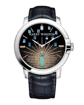 “HW Midnight Yozora Automatic 42mm” self-winding, 18KWG case (42.5mm), alligator strap. Limited to 10 sets worldwide (set with a fountain pen of the same design). Limited sale at directly managed salons. 9.24 million yen / Harry Winston (Harry Winston Client Information)